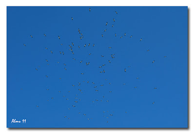Nos sorprendió bastante el paso de una gran bandada de cigüeñas blancas que danzaban al compás del viento.